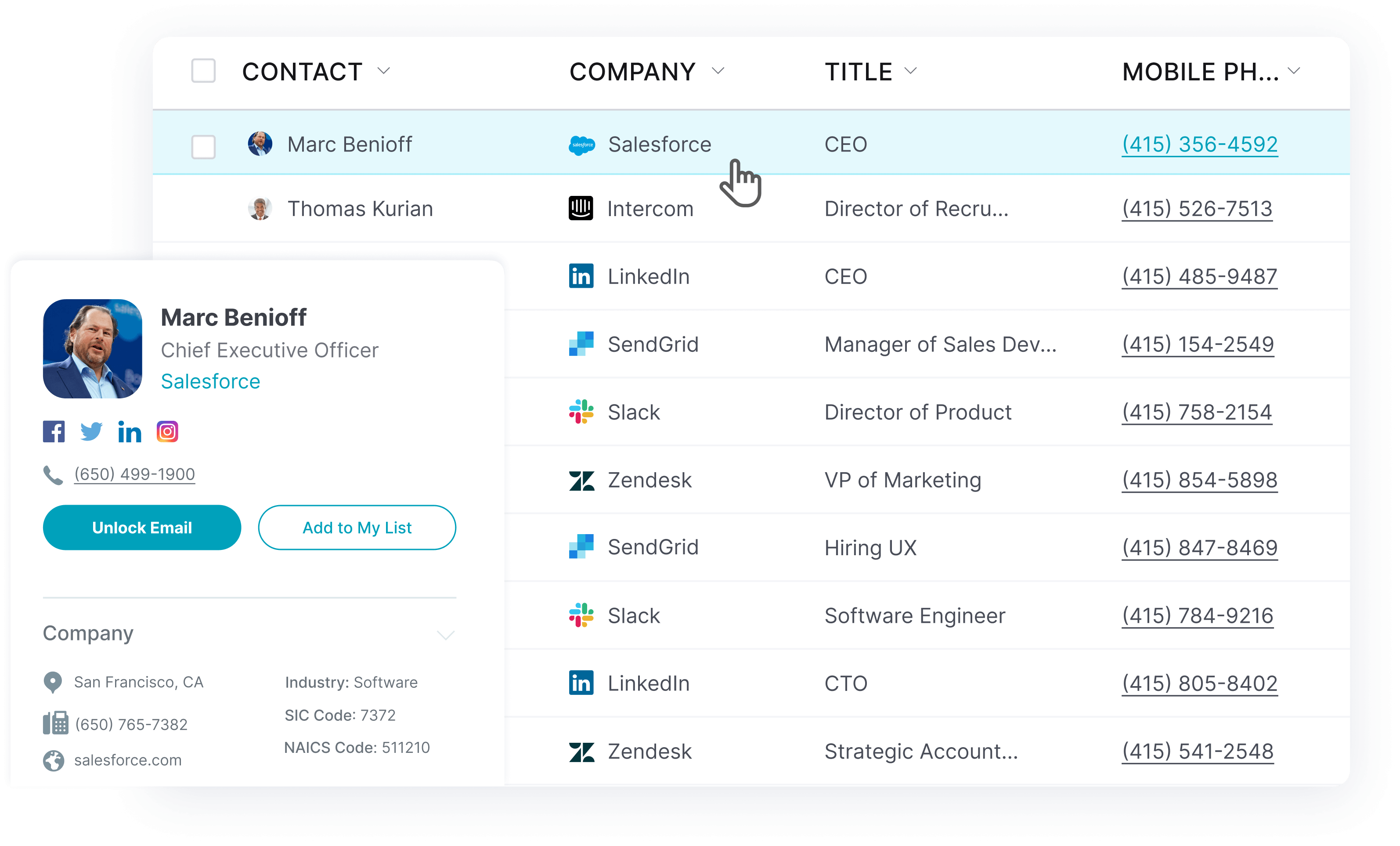 • Mobile Direct Dials: Get mobile & direct dial phone numbers for prospects