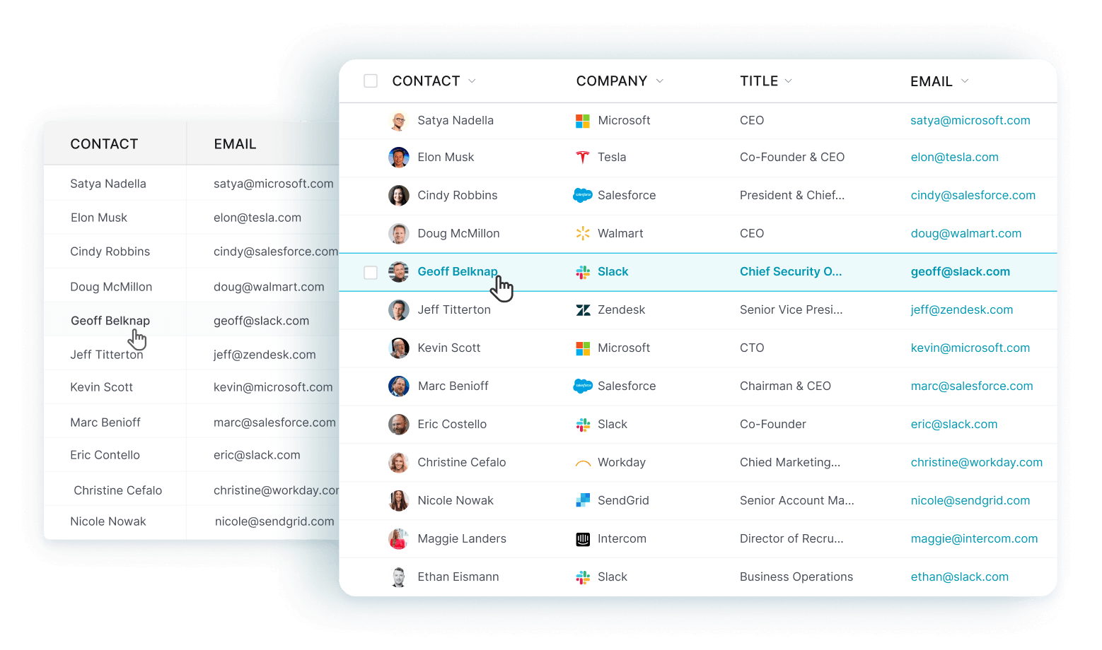 | Executive change notifications for relationship-based selling | Contact data without change tracking |