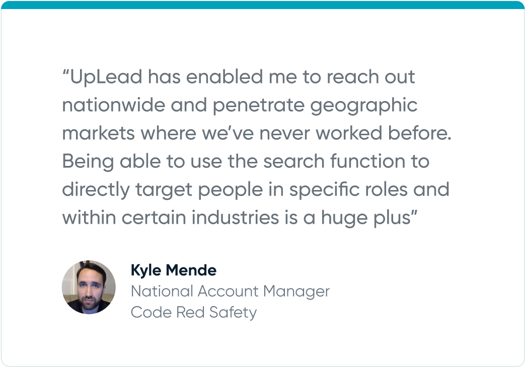 “UpLead has enabled me to reach out nationwide and penetrate geographic markets where we’ve never worked before,” shares Kyle. “Being able to use the search function to directly target people in specific roles and within certain industries is a huge plus.”