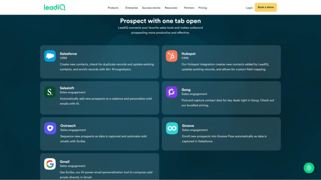 - Integrations: LeadIQ integrates with a number of popular sales solutions like Salesloft, Groove, Gong, and others. LeadIQ’s LinkedIn integration makes finding leads easier, as well.