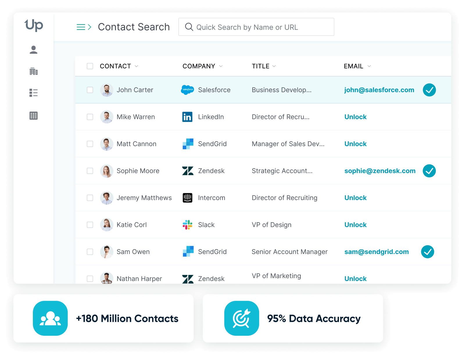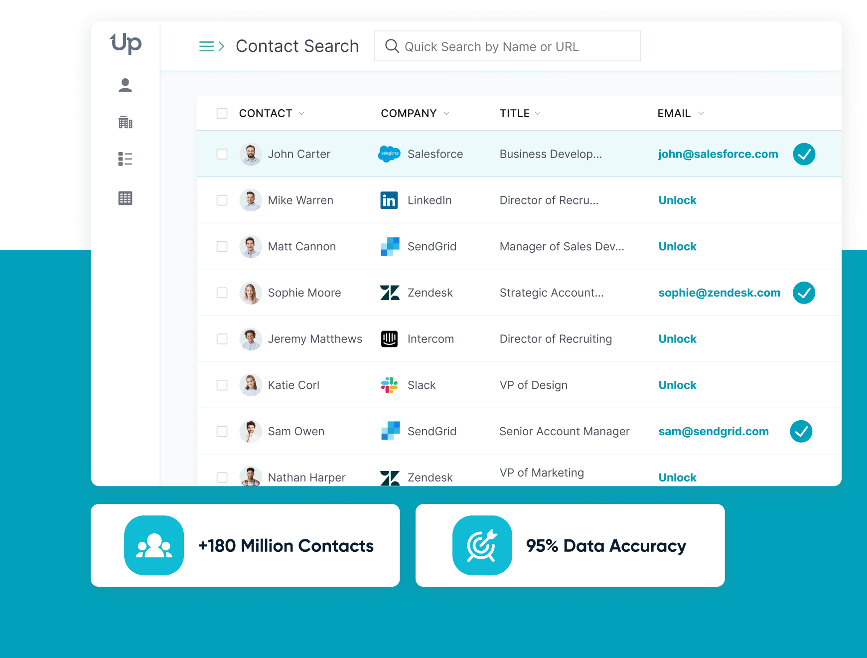 Search +180 million contacts with 95% data accuracy