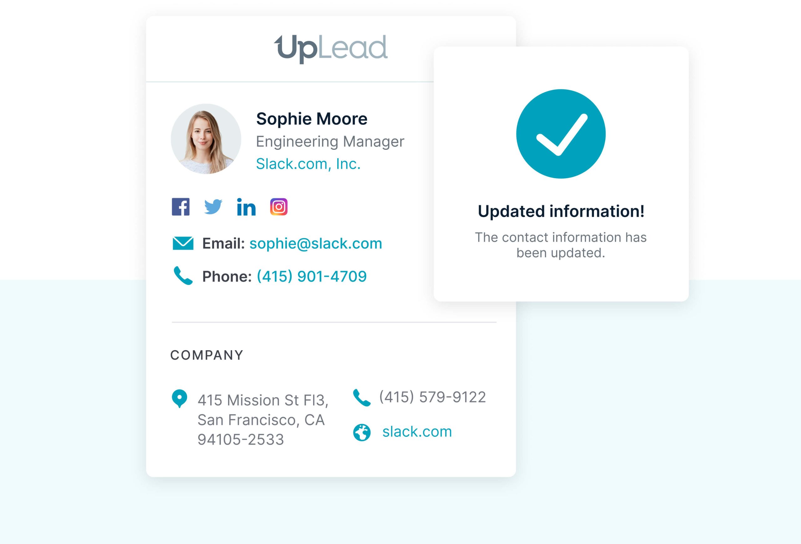 Ensure your contacts and accounts are always up-to-date by enriching them with fresh data from UpLead’s dynamic database. You can instantly refresh records or schedule updates to replace outdated information or complete missing details.